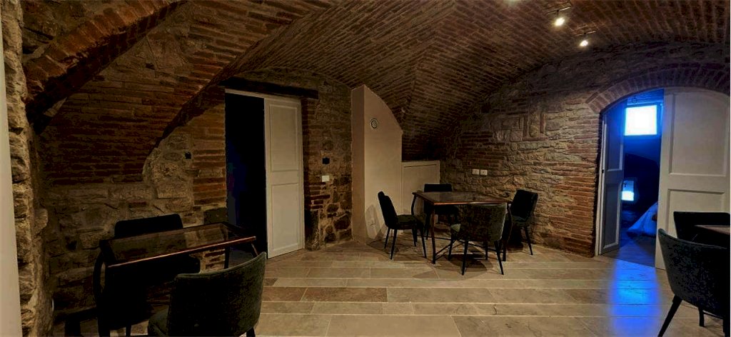 Nel cuore del centro storico di Todi, a pochi passi da Piazza del Popolo e dai più importanti monumenti della città, proponiamo in vendita meraviglioso appartamento finemente ristrutturato, della superficie commerciale complessiva di circa 220 mq. L'immobile, incastonato in un prestigioso palazzo storico e dotato di doppio ingresso, è composto da una scalinata d'ingresso completamente rivestita in cotto che conduce al soggiorno con angolo cottura, due camere da letto matrimoniali entrambe con bagno en suite, spa completa di sauna e bagno turco. Scendendo qualche gradino troviamo un'ulteriore camera da letto anch'essa con bagno en suite ed un corridoio che conduce ad un caratteristico balcone, con accesso al giardino, dal quale si puó godere di uno splendido panorama sulla Media Valle del Tevere. Completano la proprietà ampio giardino esclusivo di circa 1800 mq con la possibilità di realizzare una piscina ed una pergola per parcheggio auto. Finiture di pregio. Suggestivi soffitti in volte di mattoni. Impianto di allarme perimetrale, volumetrico e videosorveglianza. Impianto di riscaldamento, raffrescamento e deumidificazione autonomo. Soggiorno con ricircolo d'aria forzato. Spa dotata di impianto di deumidificazione autonomo rispetto al resto della proprietà. Sistema domotico per l'apertura delle porte.
