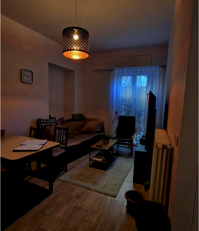 . al piano terreno, alloggio composto di ingresso su soggiorno con angolo cottura, due camere, disimpegno, bagno e anti-bagno;