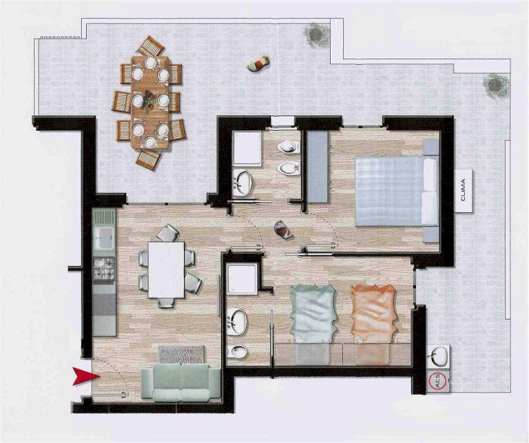 L'immobile sarà rifinito con pavimentazione in gress porcellanato, impianto di riscaldamento e raffreddamento con pompe di calore, persiane in alluminio con alette regolabili, impiantistica completamente a norma.