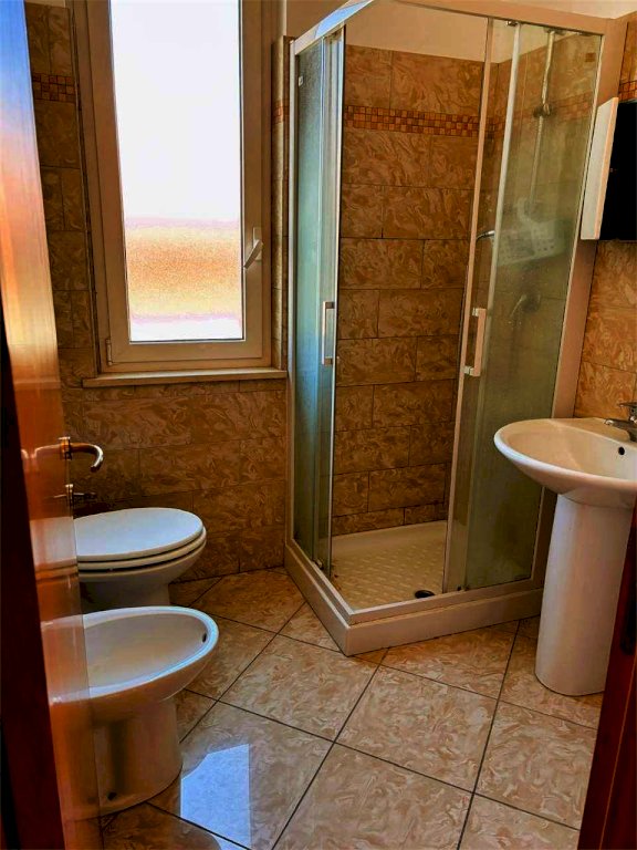 camera matrimoniale, cameretta, bagno con doccia e finestra.