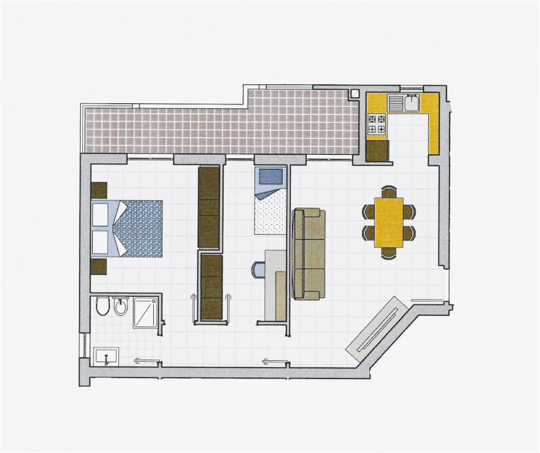 composto da ingresso su soggiorno, cucinotto, terrazzo vivibile,