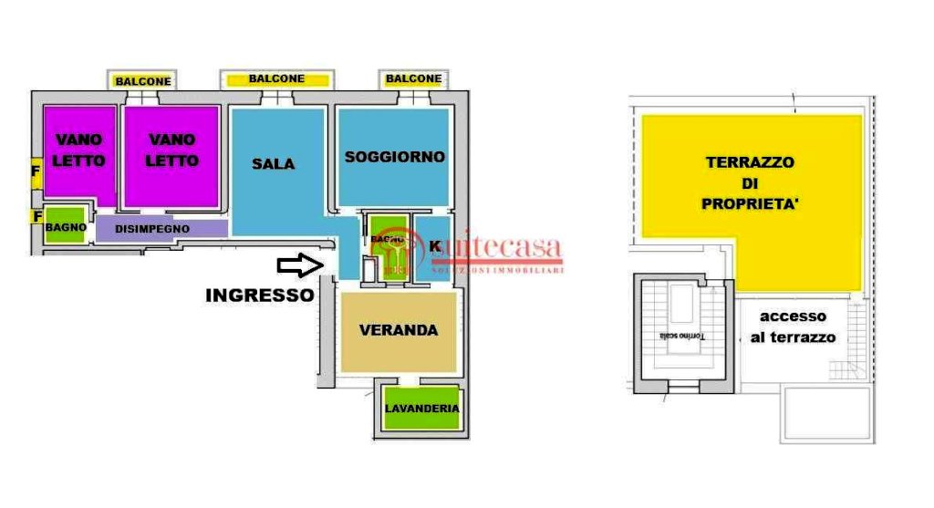 Terrazzi: 61 mq (esclusivo) + 12 (balconcini/terrazzino a livello)