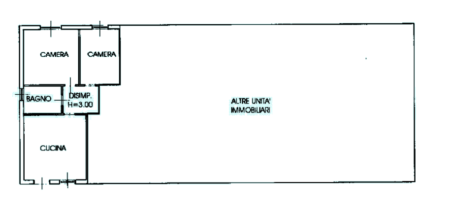 Trattasi di appartamento al piano primo composto da locale adibito a soggiorno e cucina, disimpegno, bagno, due camere da letto.