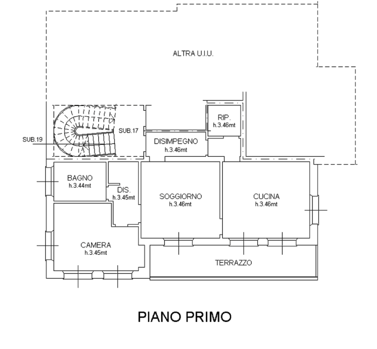 Appartamento al piano primo con pertinenziali due cantine e due ripostigli al piano primo sottostrada situato a Treviso (TV) in via Terraglio, composto da un ingresso, disimpegno, un soggiorno, una cucina, ripostiglio, ulteriore disimpegno, una camera da letto, bagno e terrazzo al piano primo.
