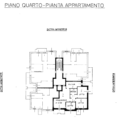 L'abitazione è posta al quattro piano, composto da tre camere, due bagni, oltre servizio e tre balconi, con cantina e box auto.