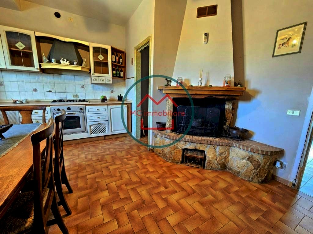 Entrando all'interno dell'abitazione troviamo l'ingresso centrale che ci conduce alla zona giorno composta da un ampio soggiorno e da una grande cucina abitabile corredata da camino e da ripostiglio, sfruttabile anche come zona lavanderia.
