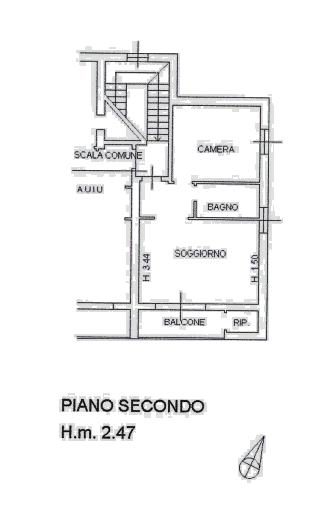 Questo appartamento, posto al piano secondo, è composto da un ingresso, un bagno, un locale soggiorno/cottura e una camera da letto.
