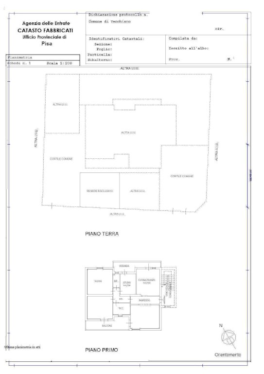 Vendesi a Nodica del Comune di Vecchiano, luminoso Appartamento di taglio classico, posto al piano primo di un fabbricato di sole tre unità abitative, della superficie complessiva di circa mq. 105 suddivisa in 5 locali oltre accessori e servizi. Si accede all'alloggio tramite cortiletto di accesso al vano scale condominiale salendo la prima rampa si arriva al portoncino privato attraverso il quale si giunge all'interno dell'unità e precisamente nel locale ingresso, alla sua destra troviamo un'ampia cucina abitabile dotata di terrazza esterna con veranda, alla sua sinistra troviamo un luminoso soggiorno anche questo dotato di una bella terrazza esterna, percorrendo il locale ingresso per tutta la sua lunghezza si accede al disimpegno notte di servizio alle due camere matrimoniali, alla camera/studio, al bagno finestrato con box doccia, ed al locale ripostiglio/lavanderia. L'unità abitativa risulta dotata di riscaldamento autonomo a gas metano e di infissi esterni nuovi di ultima generazione con vetro/camera. Sono annessi all'abitazione in proprietà esclusiva al piano terra, cortiletto di circa mq. 35 ed un garage della superficie di circa mq. 15 dove sul davanti di esso è possibile parcheggiare altre due auto. Tutto quanto ubicato a pochi Km. da Pisa, Lucca e Viareggio.