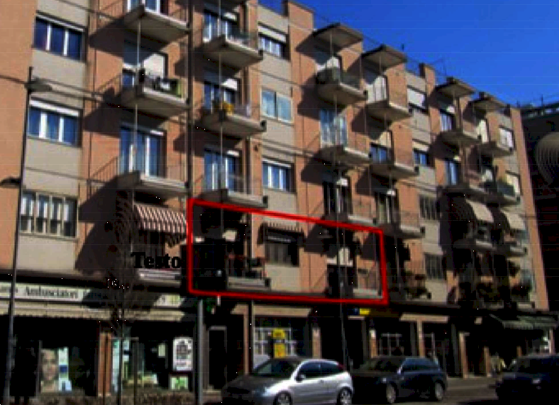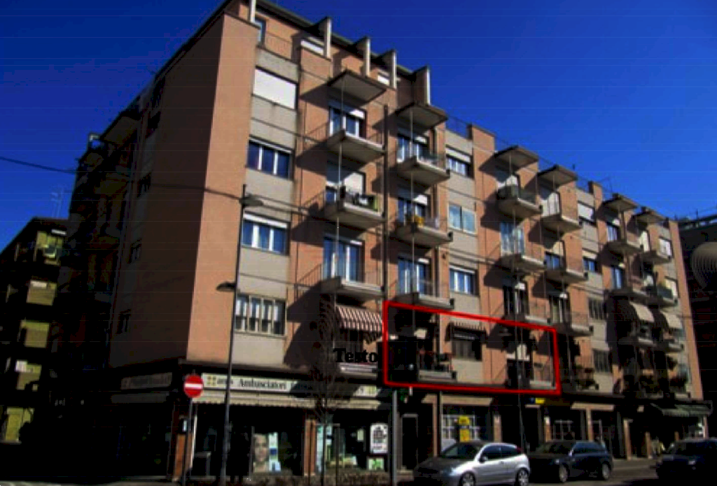 Appartamento al primo piano dotato di garage al piano terra e magazzino al quinto piano situato a Meste (VE) in via Torino, composto da una cucina, un bagno, camera matrimoniale, camera singola, un soggiorno, corridoio, ripostigli e tre balconi.
