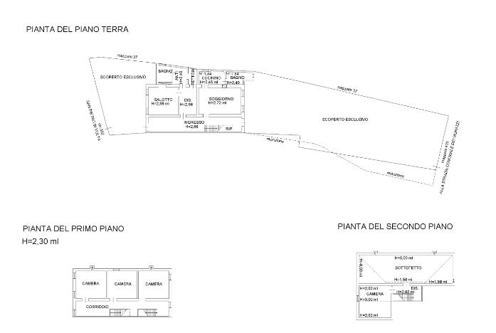 Dal locale ingresso si diparte il vano scale che conduce al primo piano dove sono collocate tre ampie camere da letto di cui una dotata di locale guardaroba, ed un locale ad uso servizio igienico.