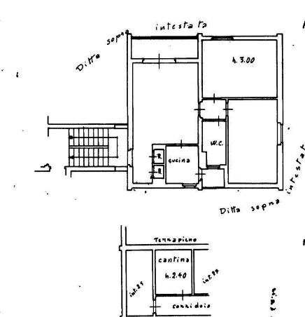 L'abitazione è posto al piano secondo, composto da ingresso, soggiorno, cucinotto,disimpegno, bagno e due camere da letto, comprensivo di cantina al primo piano interrato.