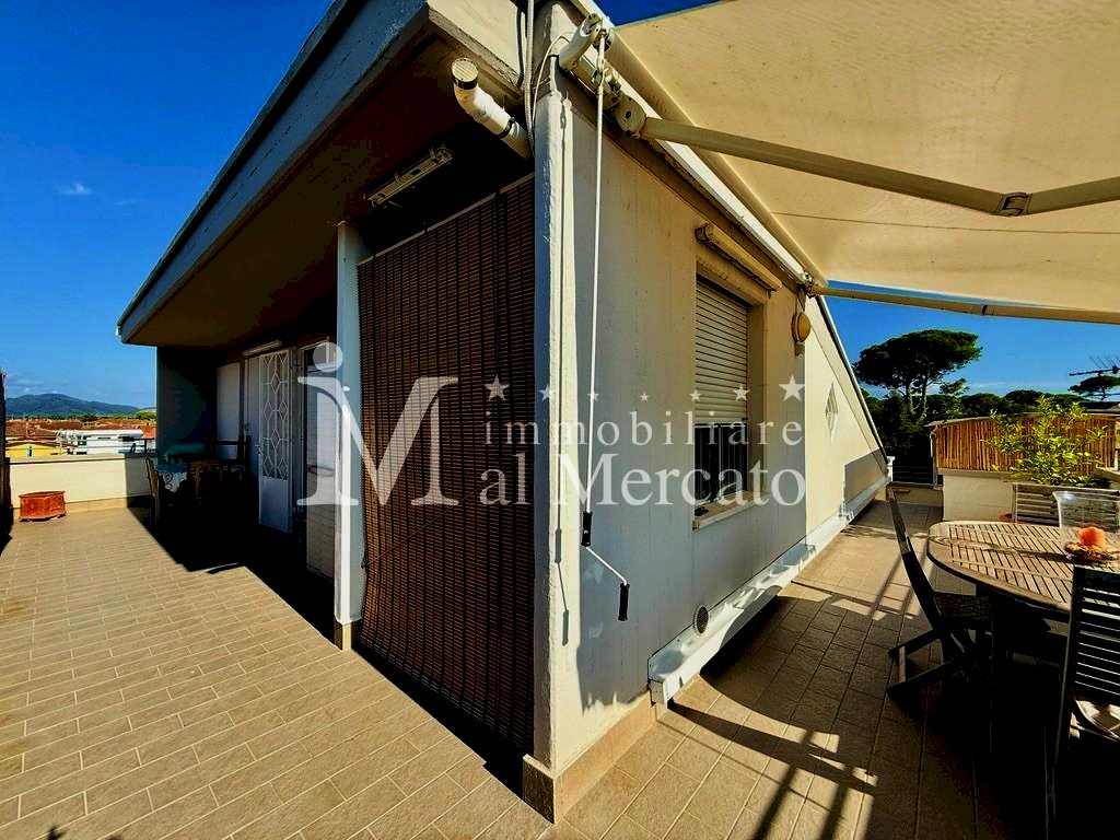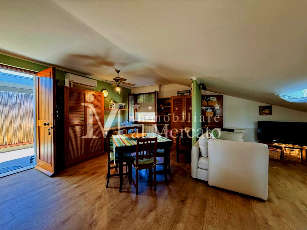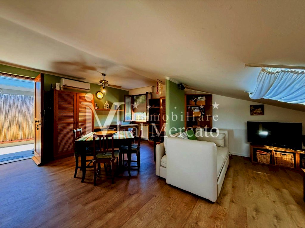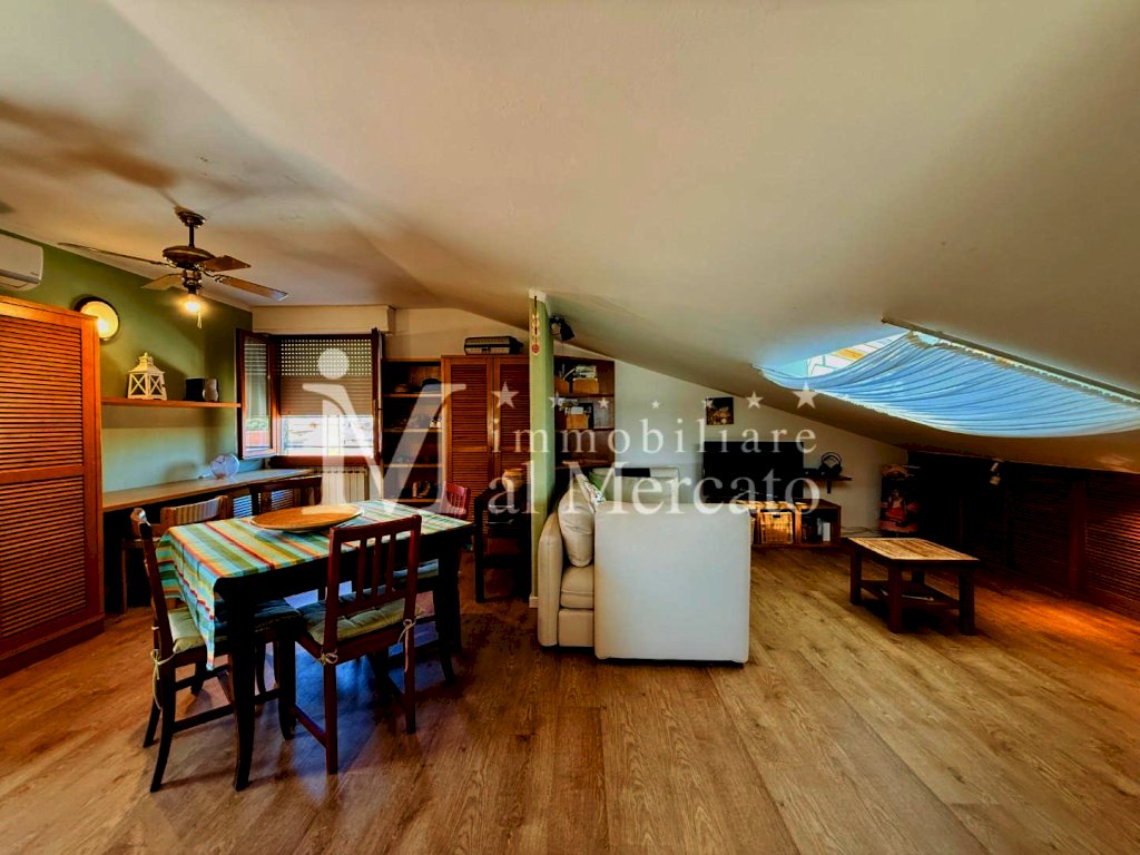 Esclusiva "La Terrazza"In vendita a Viareggio piu precisamente Torre del lago zona mare appartamento mansardato ristrutturato di 64 mq situato al 3° piano senza ascensore, ideale per giovani coppie oppure appoggio mare. L'immobile, costruito nel 1985 e rinnovato nel 2020, offre un ingresso tradizionale e vanta un'esposizione a sud ovest. Composto da 2 locali, questo appartamento è dotato di ogni comfort moderno. Le spese condominiali ammontano a 50/60 Euro mensili comprensivo di consumo di acqua. Prezzo: 185.000 Euro. In Bellissima zona davanti al supermercato Coop sul Viale Venezia proponiamo in vendita graziosissimo appartamento mansardato posto al terzo piano senza ascensore in , e palazzina di 12 condomini con posto auto in area condominiale. Appena raggiungiamo il piano veniamo accolti da una splendida terrazza pranzabile di ampia metratura disposta su due lati dove troviamo il tavolo per cene rilassanti e la zona lavanderia , coperta da tenda da sole. L' appartamento La Terrazza e' stato ristrutturato con gusto dai proprietari possiede termo singolo a metano, aria condizionata , doppi vetri, velux in sala e nella camera , mentre la zona giorno e' dotata di finestre regolari, zanzariere , inferiate. Nel suo interno composto da ampia zona open space con cucina /tinello e sala oltre a camera mansardata e bagno completamente ristrutturato con finestra.