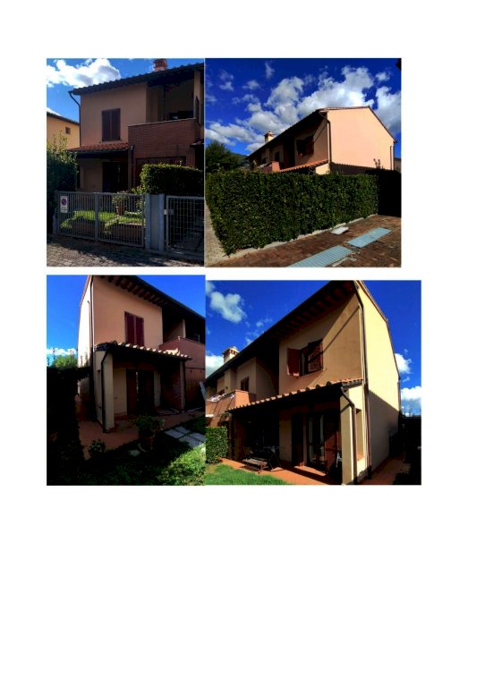 Villetta di testata lato Est disposta su due livelli con resede esclusivo su tre lati, portico sia su lato principale di accesso che sul retro, composta al piano terra da ingresso con ampio soggiorno, pranzo, cucina abitabile, bagno con antibagno, oltre scala di collegamento con il piano primo, suddiviso in camera matrimoniale, camera singola, bagno e studio con annesso ampio terrazzo parzialmente coperto. Completa la proprietà autorimessa.