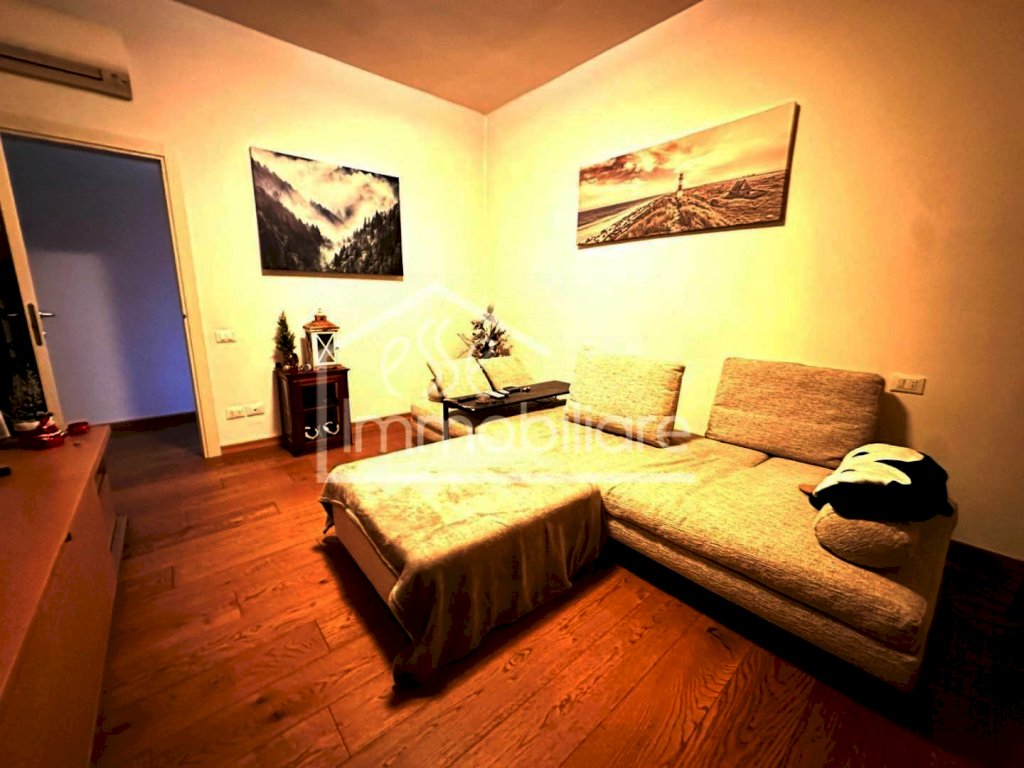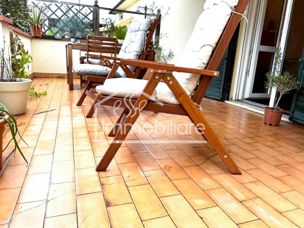 L'abitazione è composto da ampio e luminoso soggiorno con angolo cottura con affaccio su terrazzo di 25 mq, due camere da letto matrimoniali, un servizio igienico con box doccia e finestra e ripostiglio con accesso alla soffitta.