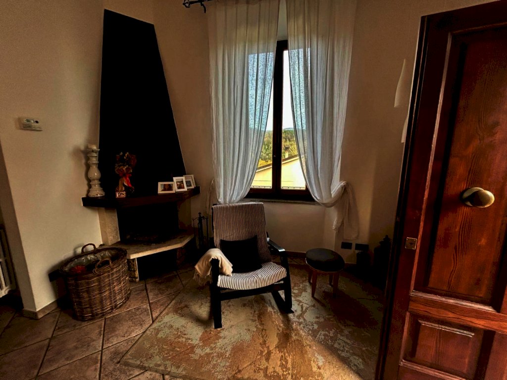 L'appartamento è composto da soggiorno con caminetto, cucina, bagno, 2 camere oltre terrazza angolare, giardino e ampio locale accessorio di circa mq 80 posto al piano seminterrato con accesso carrabile.