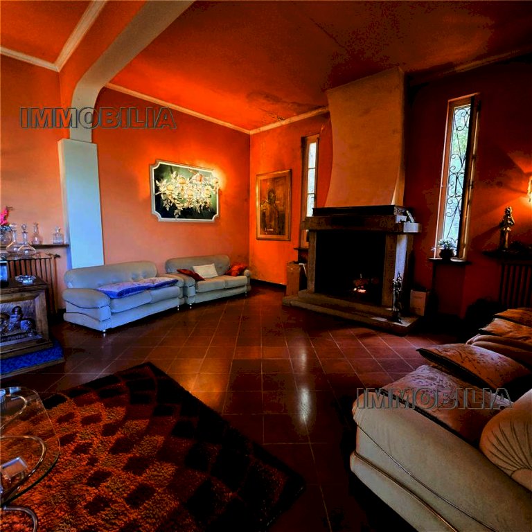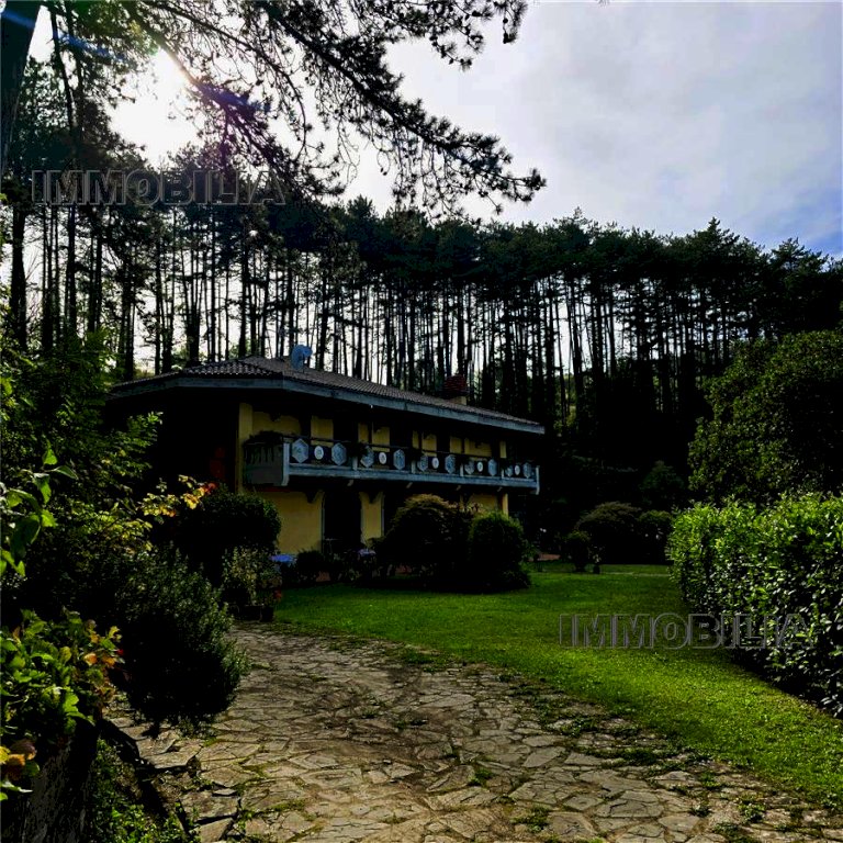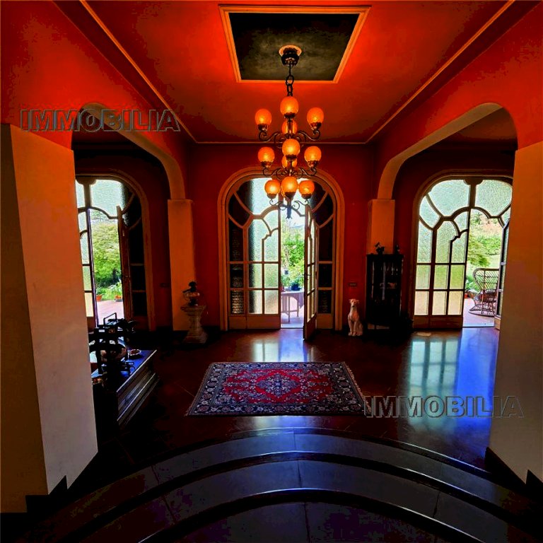 La villa è così distribuita: a Piano interrato ampie cantine, a Piano terra ingresso, disimpegno, maestoso salone con camino con accesso diretto al giardino, bagno con doccia; appartamento per la servitù composto da in ingresso, soggiorno, camera, antibagno e bagno con accesso indipendente dalla villa ma collegato al suo interno. A Piano primo abbiamo una grande cucina abitabile, sala da pranzo con terrazzo panoramico, bagno con doccia, ripostiglio, studio, 3 ampie camere matrimoniali e bagno principale con vasca.