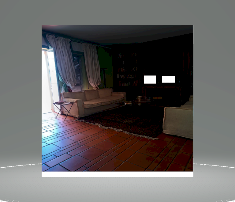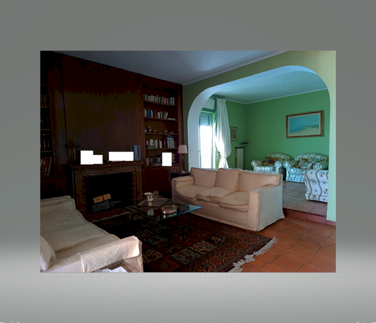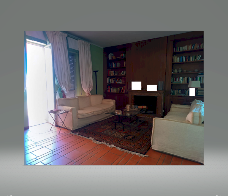 ZONA GIORNO: ingresso nell'ampio disimpegno con finestra, corridoio, salone doppio con camino e ingresso sul terrazzo a livello, tinello con angolo cottura con vano lavanderia con accesso sulla veranda esterna (condonata).