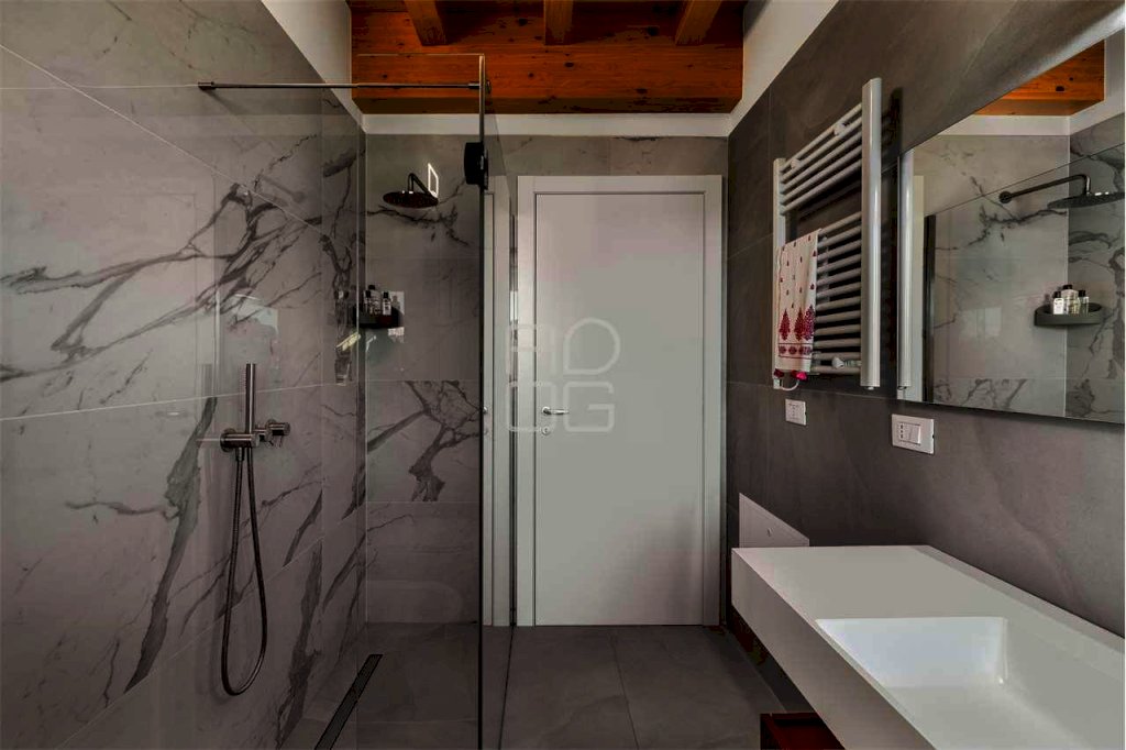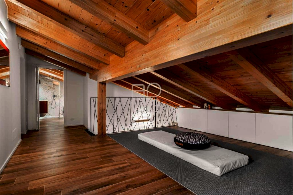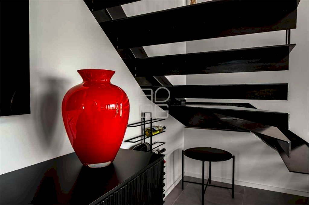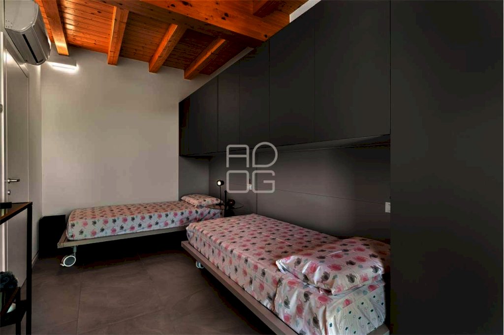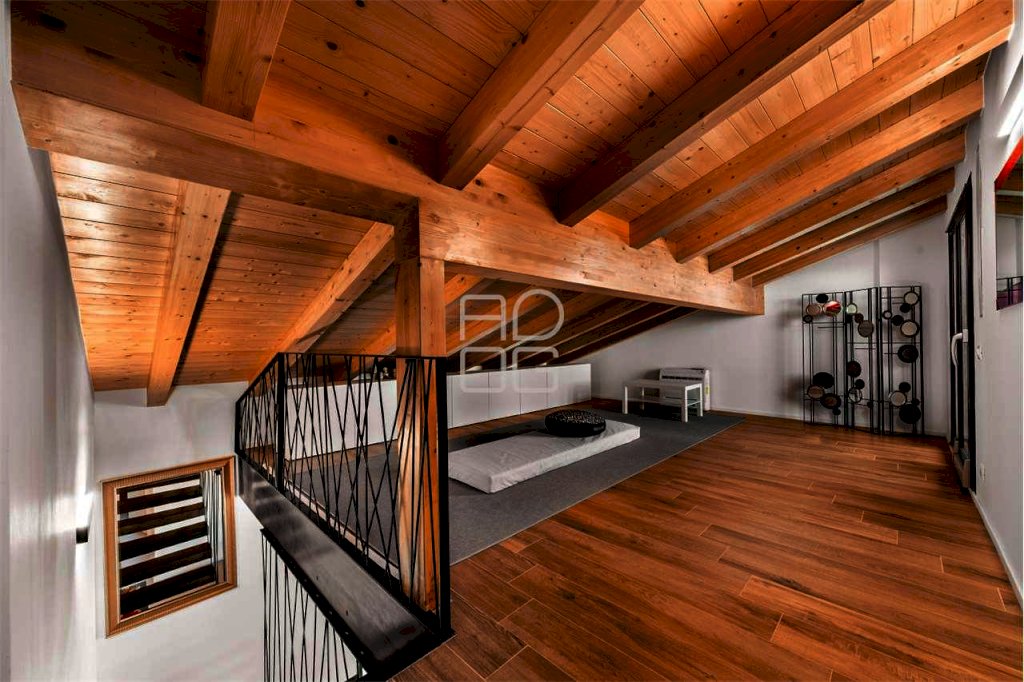 Il vero protagonista del complesso è l'attico al secondo e ultimo piano, un ambiente esclusivo e scenografico impreziosito da terrazze ampie e vivibili che regalano una vista lago davvero impareggiabile, capace di emozionare in ogni momento della giornata. La zona giorno, luminosa e raffinata, è caratterizzata da grandi vetrate che amplificano la luminosità naturale e creano una perfetta continuità tra interno ed esterno. La cucina a vista e la serra bioclimatica contribuiscono a rendere lo spazio accogliente, moderno e perfettamente fruibile.