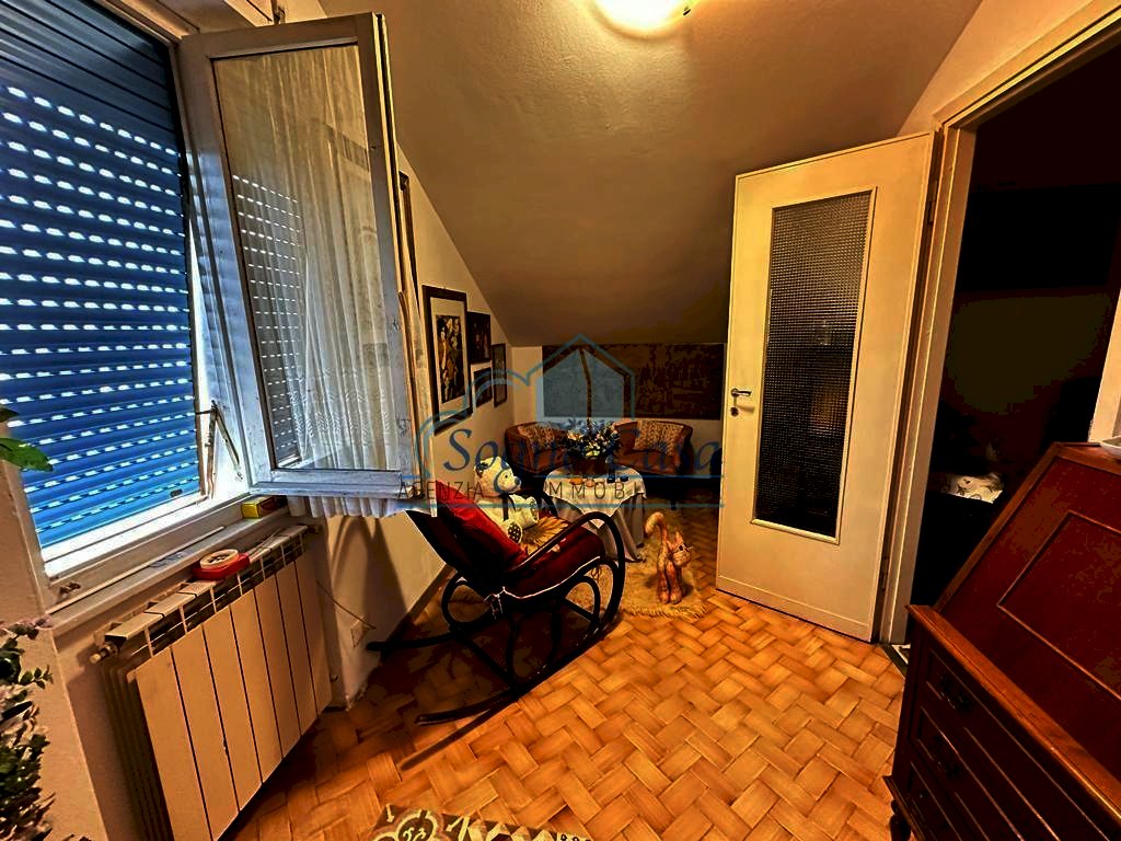 La zona notte è ben separata da disimpegno, con tre camere da letto. Servizio finestrato con doccia. Soffitta. posto auto assegnato. Riscaldamento autonomo.