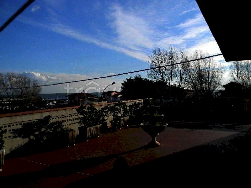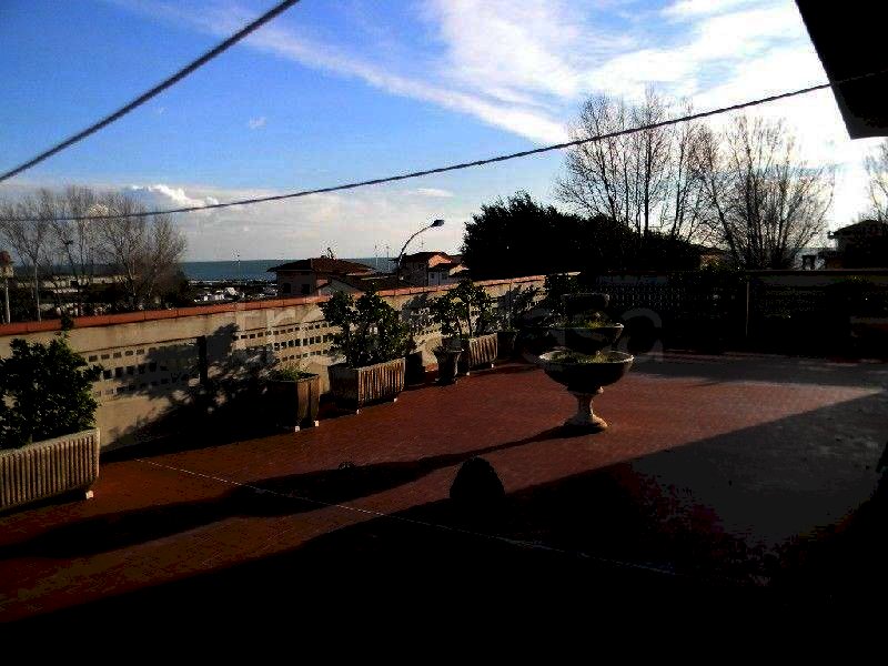 Attico in perfette condizioni,unico nel suo genere, fronte mare e vista sulle Apuane, con terrazza di mq.150 . Al secondo e ultimo piano in edificio di recente costruzione, a Marina di Carrara confinante con Marina di Massa, composto da salone doppio, Camera matrimoniale di ampie dimensioni, cucina abitabile, bagno, ripostiglio, possibilità di seconda camera, pavimenti in onice rosa, buone rifiniture, termoautonomo, posto auto.