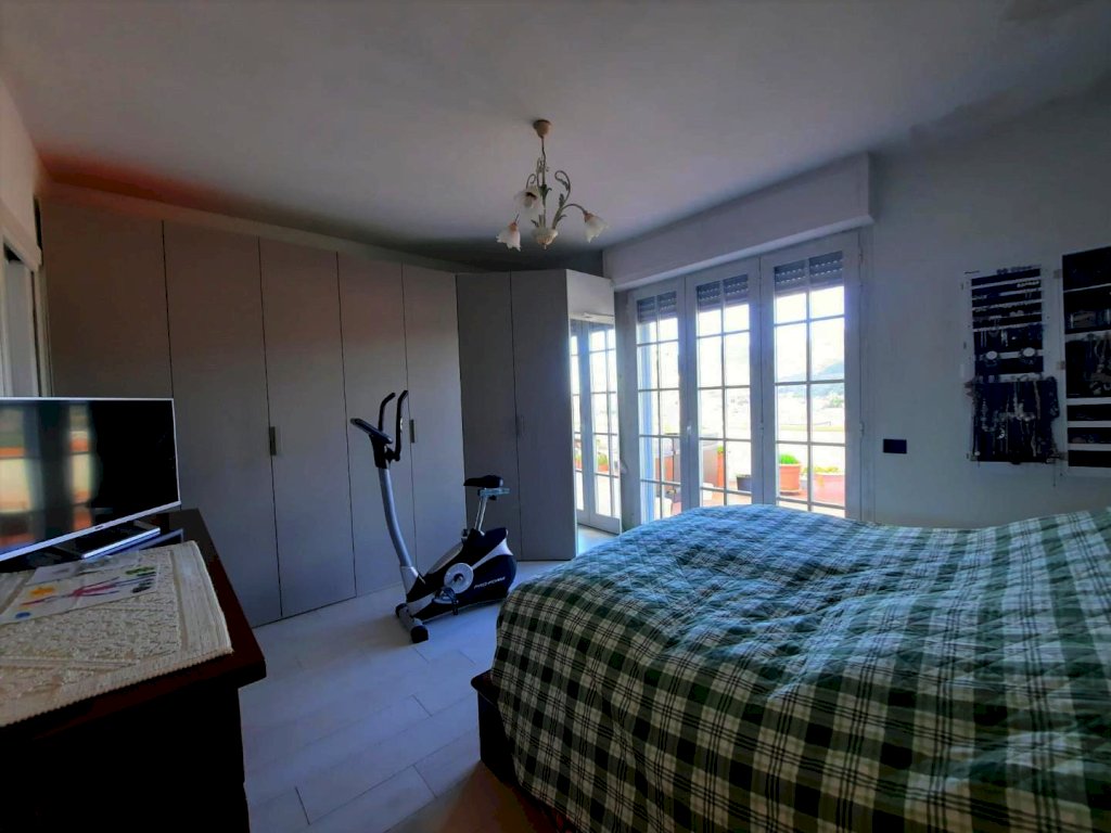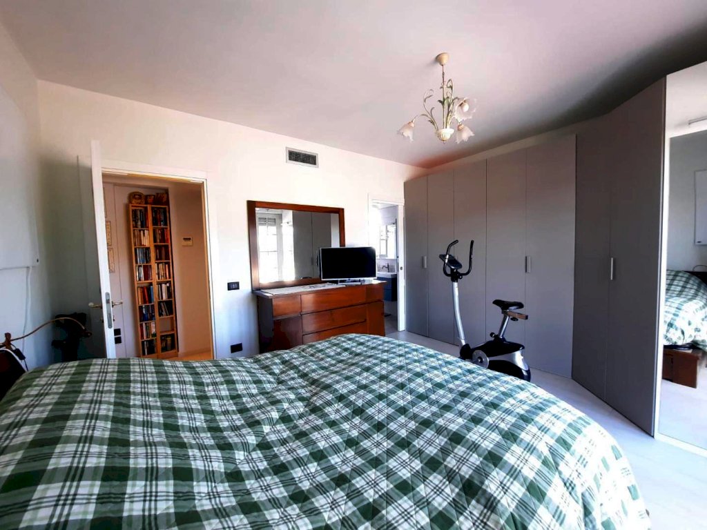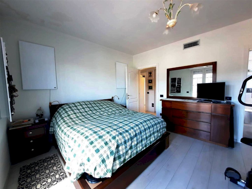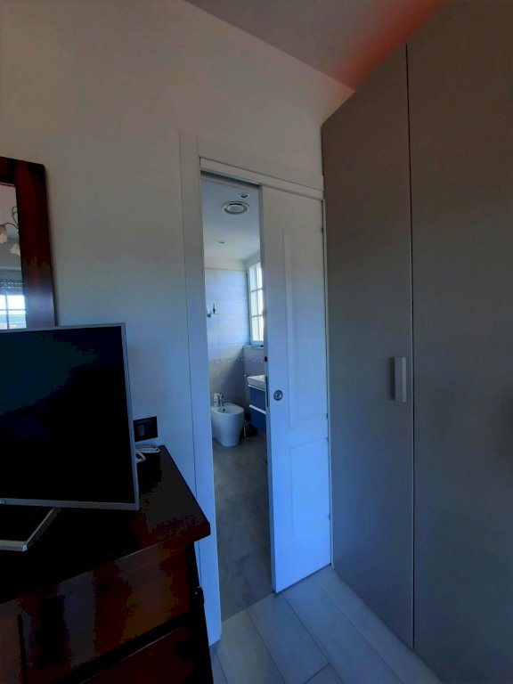 due camere matrimoniali, una con bagno dedicato e l’altra con cabina armadi, entrambe con ampie porte-finestre per uscire sulla terrazza infine un ulteriore bagno di servizio. La posizione elevata e l’assenza di unità confinanti garantiscono massima privacy, luminosità e ottima areazione. Completano la proprietà un locale garage al piano terra e il posto auto adiacente.