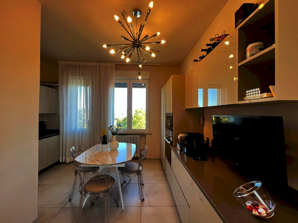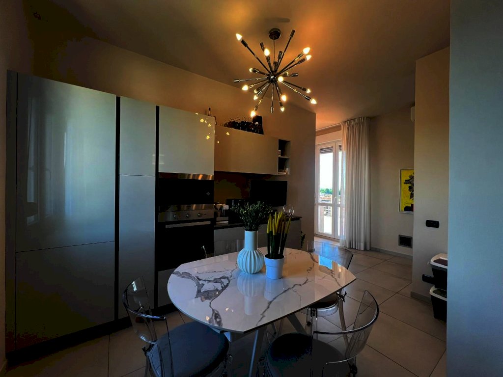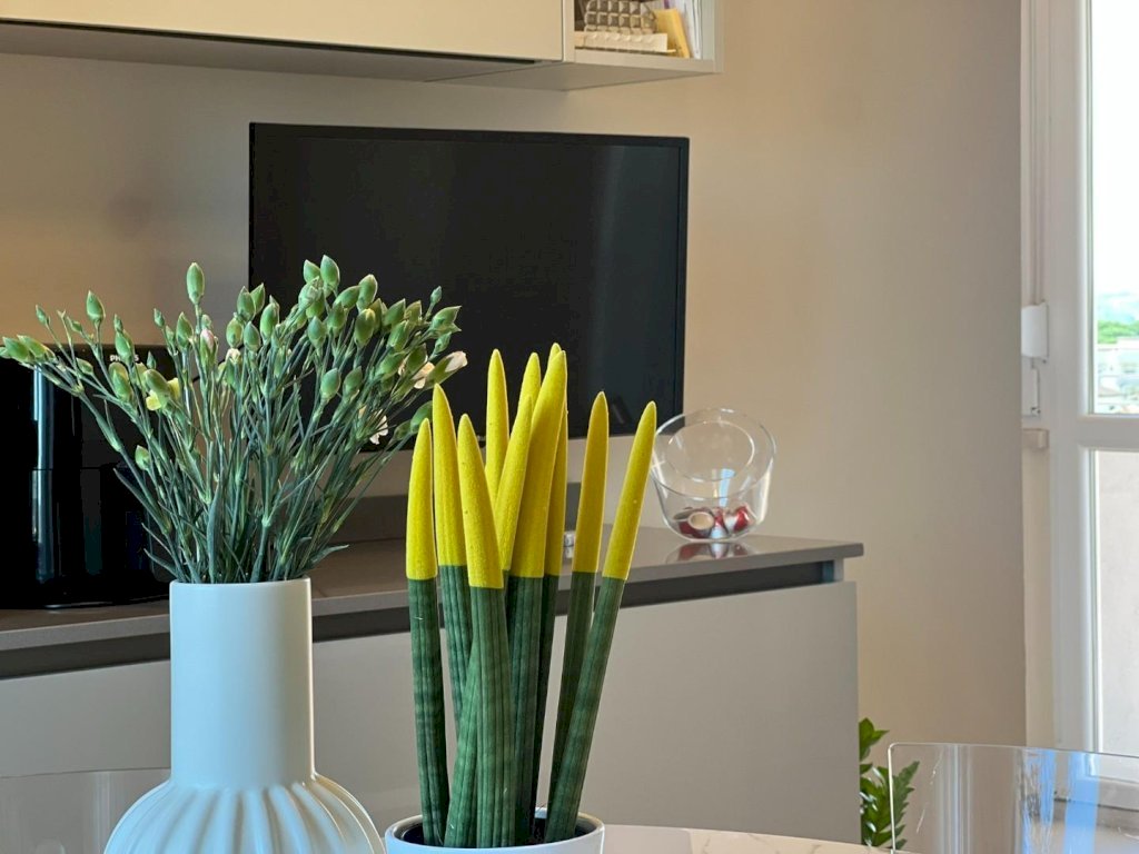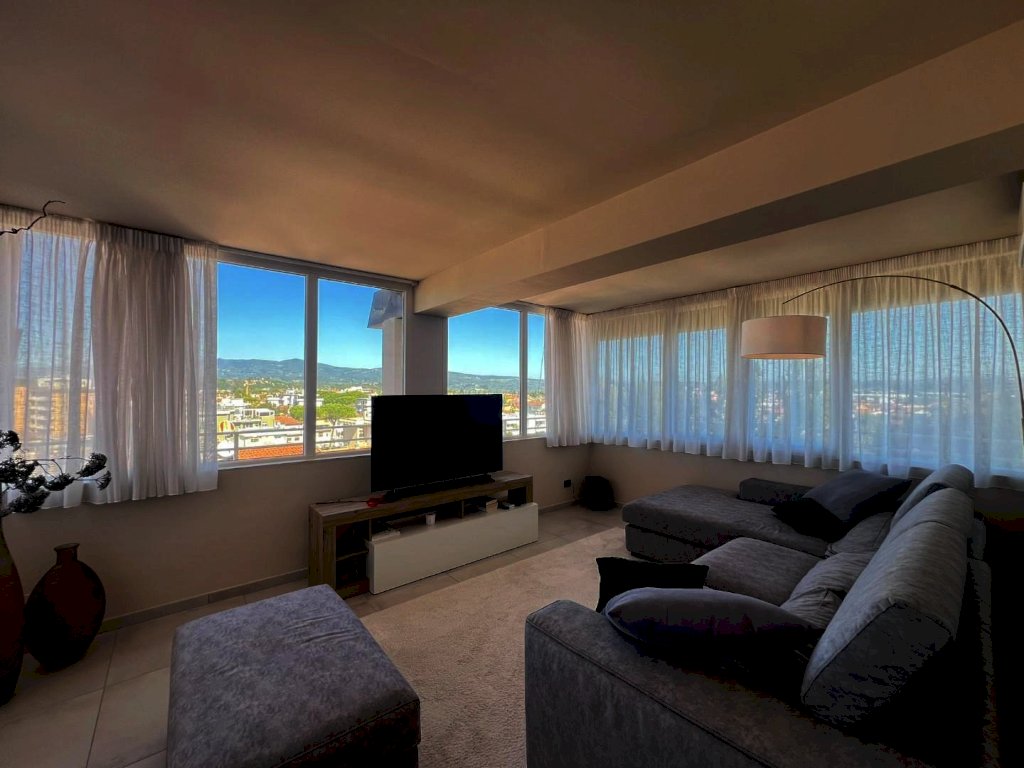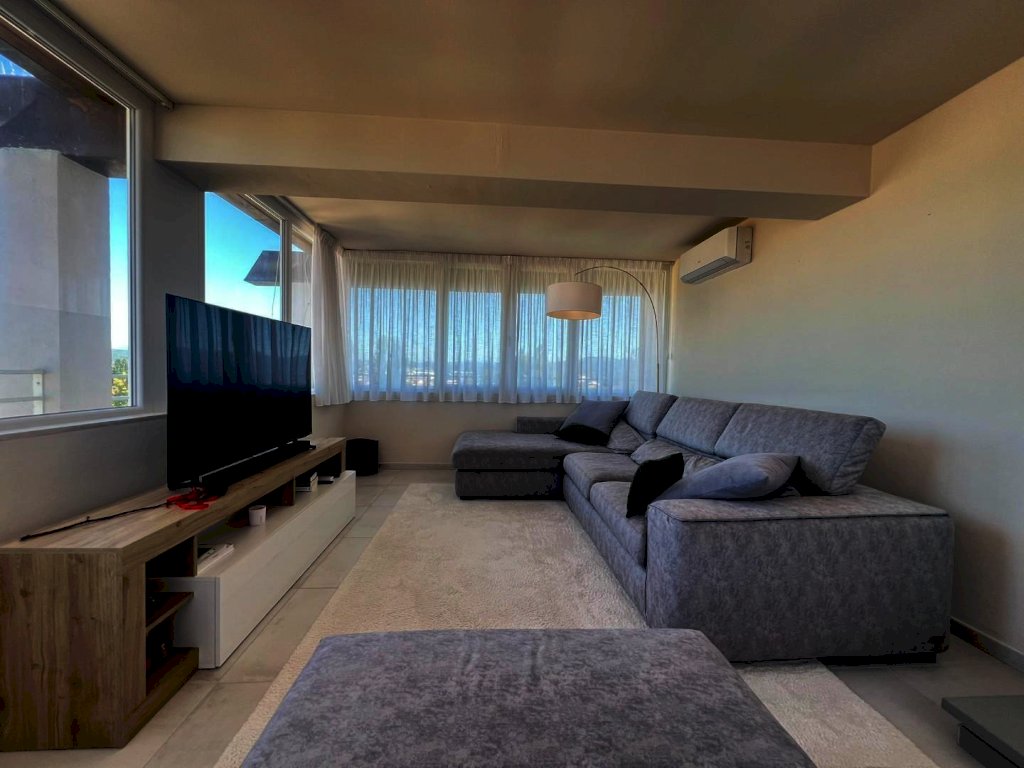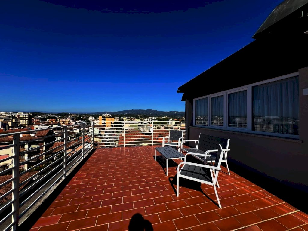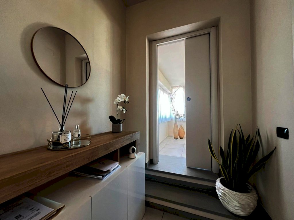 La sua composizione: ingresso/disimpegno, vano cottura e pranzo, oltre locale soggiorno informale completamente separato e contornato di pareti vetrate panoramiche, bagno e due camere da letto ampie. L'appartamento è anch'esso completamente ristrutturato e dotato di tutti i comfort, grazie agli impianti nuovi, alla presenza dell'aria condizionata, e agli ottimi infissi ad abbattimento acustico e termico, che conferiscono alla casa non solo un ottimo isolamento ma anche un'estetica moderna e sobria, che si sposa bene con un ambiente giovanile fresco, sapientemente arredato ultimato ed organizzato, infatti i materiali, i pavimenti, i rivestimenti risultano tutti di ottima qualità. Vera perla aggiunta e inimitabile la terrazza abitabile con tre diversi accessi; 80 mq di spazio esterno vivibile soleggiato e ben organizzato per pranzi, cene e momenti di relax unico, parzialmente coperta da pensilina con copertura elettronica retrattile e completa di illuminazione. Classe energetica A1; IPE 111,62. Euro 334.000,00