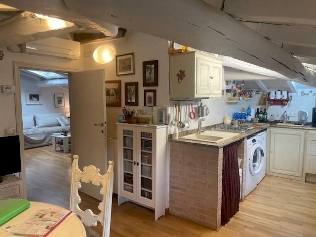 Forte dei Marmi a soli 300 metri dalle spiagge, Appartamento al Secondo Piano Mansardato, composto da: Soggiorno, Cucina Abitabile, Camera Matrimoniale e Bagno Finestrato con Box Doccia. Giardino Privato. L'immobile รจ accatastato con C2.
