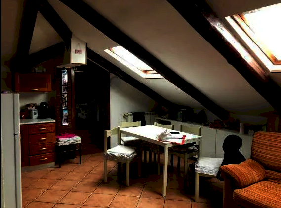 Alloggio al piano sottotetto (terzo piano fuori terra) composto da ingresso, soggiorno con angolo cottura, camera, bagno e altra porzione di sottotetto non abitabile, oltre autorimessa al piano interrato.