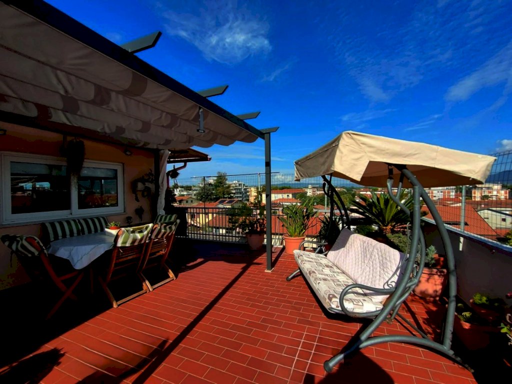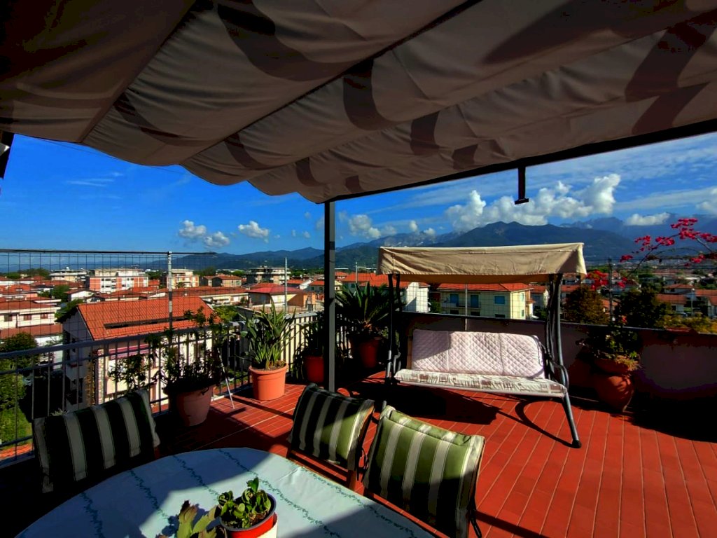 Scopri questo splendido attico situato a soli 400 metri dal mare e 200 metri dal centro, perfetto per chi desidera vivere in una posizione privilegiata. Completamente rinnovato di recente, questo attico al quarto piano è libero su quattro lati e offre una vista mozzafiato sulle Alpi Apuane.