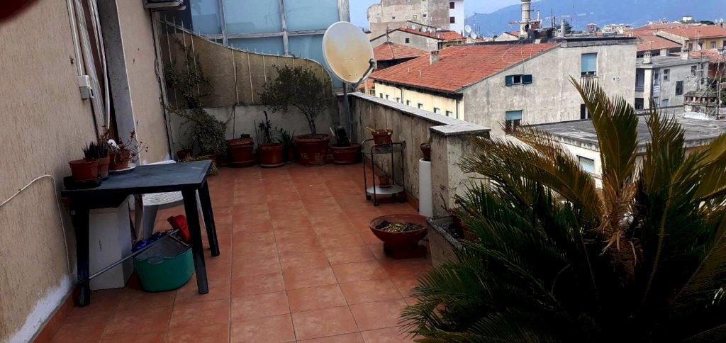Pisa - Zona Stazione Attico di 4 vani per 80 mq e terrazza abitabile di 22 mq circa posto al piano 5° con ascensore composto da: ingresso in grande soggiorno con accesso al grande terrazzo di circa 22 mq , 1 camera matrimoniale, 1 camera media , un bagno c/f , cucinotto con balcone e ripostiglio. L'appartamento ha una zona giorno molto piacevole perchè la sala è di tipo open space su cui si affacciano le altre stanze, ma ha sopratutto il grande terrazzo abitabile. La terrazza è molto ampia ed assolutamente abitabile . Riscaldamento centralizzato Classe energetica: G . € 235000 (spese cond. 150 con riscaldamento) Rif. 25/20
