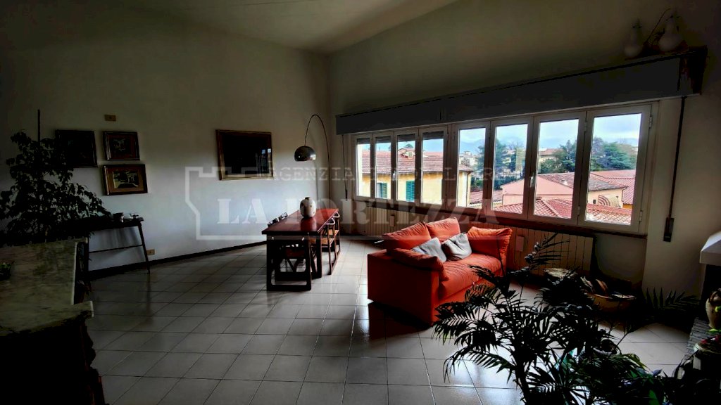 SANTA MARIA: a breve distanza da Piazza dei Miracoli ed in condominio signorile, ottimo appartamento ristrutturato negli anni '90, al piano secondo ed ultimo, internamente composto da una luminosa zona giorno articolata in due ambienti di cui uno con caminetto, sala da pranzo, cucina abitabile, disimpegno notte, due camere e bagno finestrato. Una scala a vista nel soggiorno conduce alla soffitta e alla terrazza di circa 24 mq., dalla quale si può ammirare una splendida vista fino al mare. Con alcune modifiche è possibile adeguare l'immobile con tre camere e doppi servizi, senza compromettere l' ampiezza della zona giorno. A completamento della proprietà un comodo locale deposito al piano terra - Tetto e facciata rifatti nel 2023.
