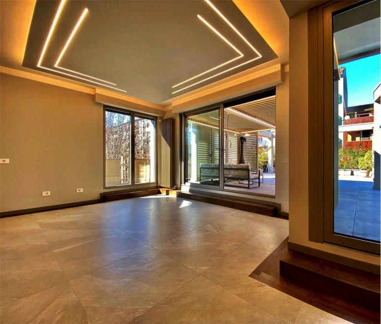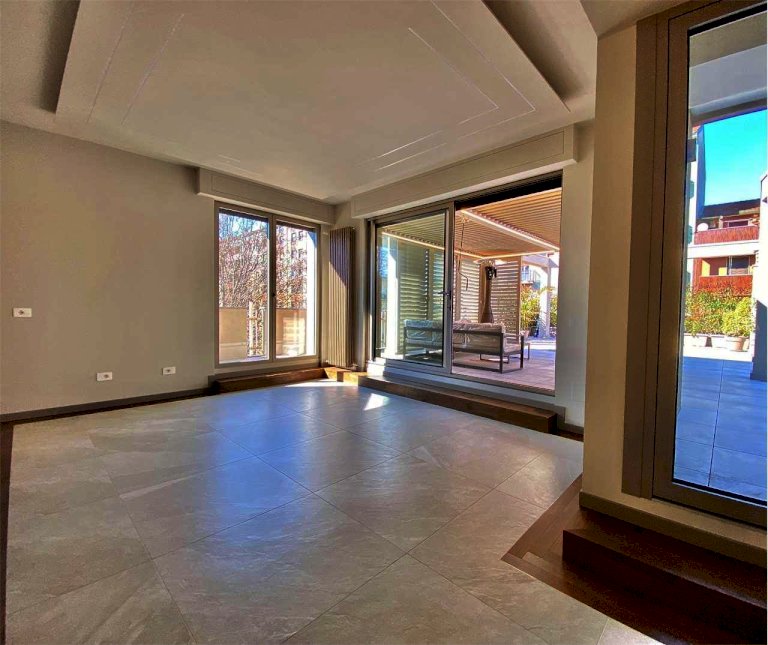 L'appartamento è totalmente ristrutturato a nuovo, ed è composto da: ingresso su disimpegno e ripostiglio, luminoso soggiorno con ampie vetrate e accesso al terrazzo di circa 148 mq.