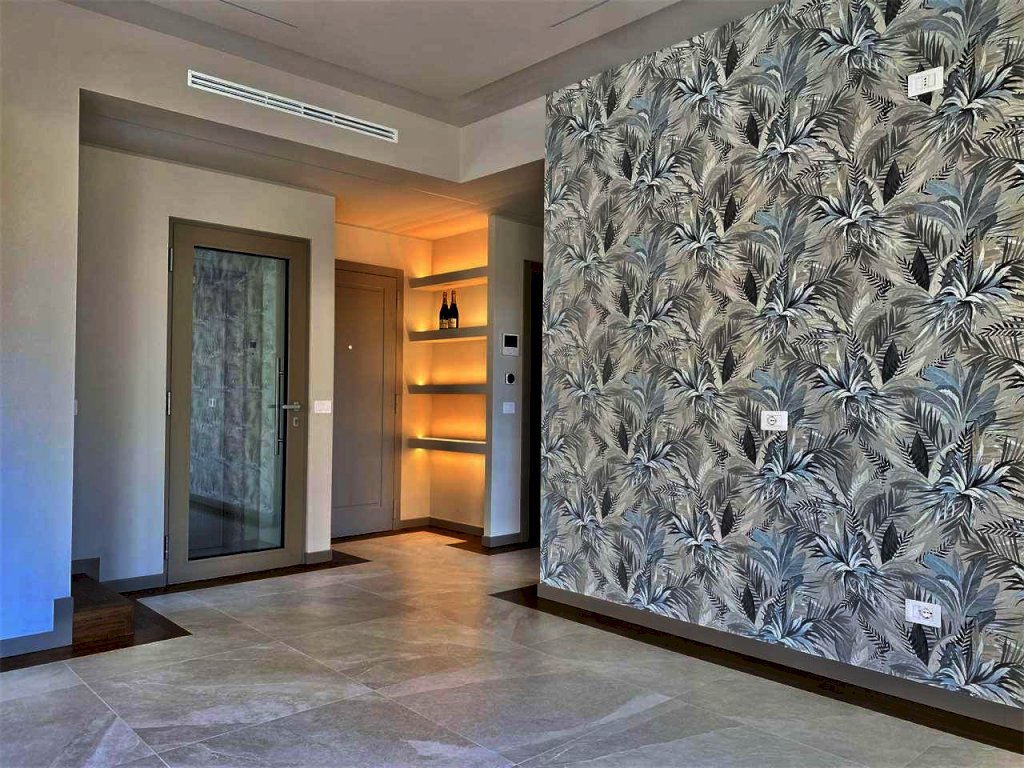 Accessori e dettagli interni: aria condizionata canalizzata con pompa di calore, isolamento termico ed acustico sui muri interni, perimetrali e soffitti, ascensore direttamente in soggiorno, porta d'ingresso dotata di serratura elettronica con impronta digitale, video citofono connesso con apertura da remoto, porte interne Idoor, piastrelle Italgraniti, parquet rovere affumicato a spina italiana, infissi triplo vetro in alluminio color tortora trasmittanza 1,20W/m2k, accesso privato al terrazzo (anche senza passare dall'interno della proprietà), impianto di irrigazione.