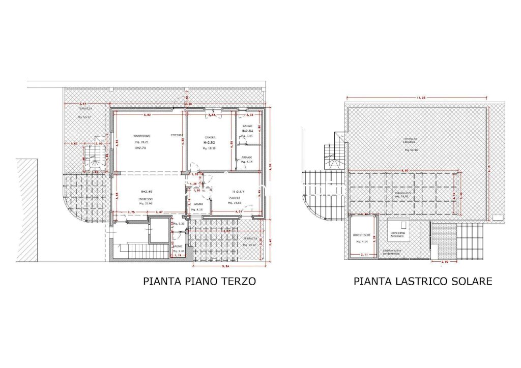 L 'immobile è distribuito in salone doppio con uscite sul terrazzo perimetrale, bagno finestrato con doccia, zona notte con due camere ed un bagno entrambi affacciate sulla terrazza perimetrale da cui parte una scala che porta ad un ulteriore terrazzo di 110 mq senza vis a vis in attesa di essere rifinito secondo i gusti del proprietario.
