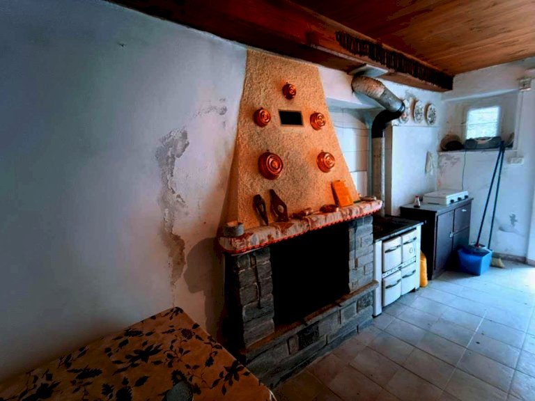 Camino + stufa a legna per riscaldamento / atmosfera tipica montana
