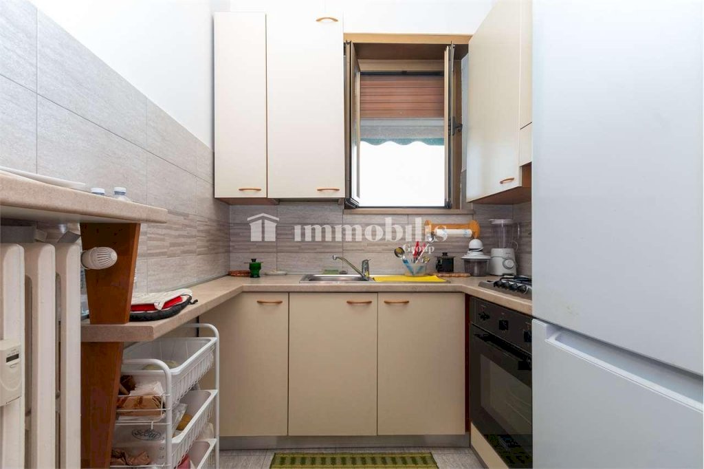 Il bagno è finestrato, completo di box doccia e spazio dedicato alla lavatrice, mentre un comodo ripostiglio aggiunge praticità alla casa.