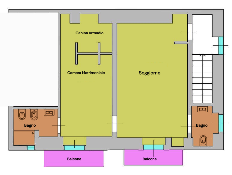 Un valore aggiunto di questa proprietà sono i due balconi con affaccio su strada, uno spazio esterno privato perfetto per godersi momenti di relax all'aria aperta e ammirare il dinamismo della zona.