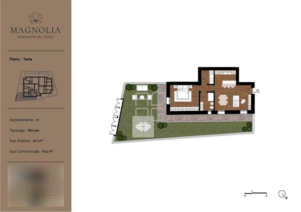Immagina di vivere in una residenza dove eleganza, innovazione e benessere si incontrano per offrirti un'esperienza abitativa senza paragoni. Nel cuore di Desenzano, a pochi passi dal centro e comoda a tutti i servizi, nasce un complesso esclusivo pensato per chi cerca il massimo in termini di design e comfort. Un progetto raffinato, composto da sole undici unità, dove l'architettura moderna si inserisce perfettamente nel contesto, creando un'armonia tra interni ed esterni. Le ampie vetrate permettono alla luce naturale di diventare protagonista, donando luminosità agli ambienti e un meraviglioso senso di continuità con l'outdoor. Per i momenti di relax, la piscina e l'elegante zona solarium offrono un angolo di pace e benessere, perfetto per godersi il tempo libero in un'atmosfera esclusiva. Questa residenza non è solo bellezza: ogni dettaglio è stato studiato per garantire il massimo dell'efficienza energetica e della sostenibilità. Costruita in classe energetica A4, con un impianto completamente gas free e un avanzato sistema fotovoltaico, assicura consumi ridotti e un comfort abitativo elevato. La tecnologia è al servizio del benessere quotidiano, grazie a un impianto domotico, al riscaldamento a pavimento e a un sofisticato sistema di ventilazione meccanica controllata. Inoltre, l'attenzione all'isolamento termico e acustico rende ogni ambiente perfetto in ogni stagione, proteggendoti da rumori e sbalzi di temperatura. Tra le varie soluzioni disponibili, l'Unità 01 rappresenta un perfetto equilibrio tra funzionalità ed eleganza. Situata al piano terra, offre un'ampia zona giorno dove la cucina a vista si integra armoniosamente con il soggiorno, creando un ambiente accogliente e luminoso. Le grandi vetrate permettono di accedere direttamente al giardino privato, uno spazio esterno ideale per pranzi all'aperto e momenti di relax. La zona notte è pensata per garantire il massimo comfort e privacy. La camera matrimoniale si affaccia direttamente sul giardino, regalando una piacevole continuità tra interno ed esterno. Il bagno, finemente rifinito, è dotato di sanitari moderni e materiali di alta qualità, con spazi ben organizzati per garantire praticità e stile. Completa la proprietà una comoda lavanderia, progettata per ottimizzare gli spazi e facilitare le attività quotidiane, garantendo ordine e funzionalità. A rendere questa residenza ancora più esclusiva, la disponibilità di box auto privati direttamente collegati all'abitazione, garantendo praticità e sicurezza. Un dettaglio prezioso per chi desidera un accesso comodo e diretto alla propria casa, con la tranquillità di uno spazio riservato per l'auto. Se sogni una casa che coniughi tecnologia, stile e qualità della vita, questa è l'opportunità perfetta. Contattaci per scoprire questa residenza esclusiva.