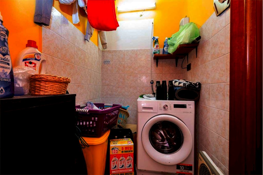 Il disimpegno separa gli ambienti e contiene un ripostiglio capiente dove ci sono gli attacchi della lavatrice e si puó utilizzare come locale lavanderia.