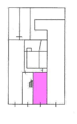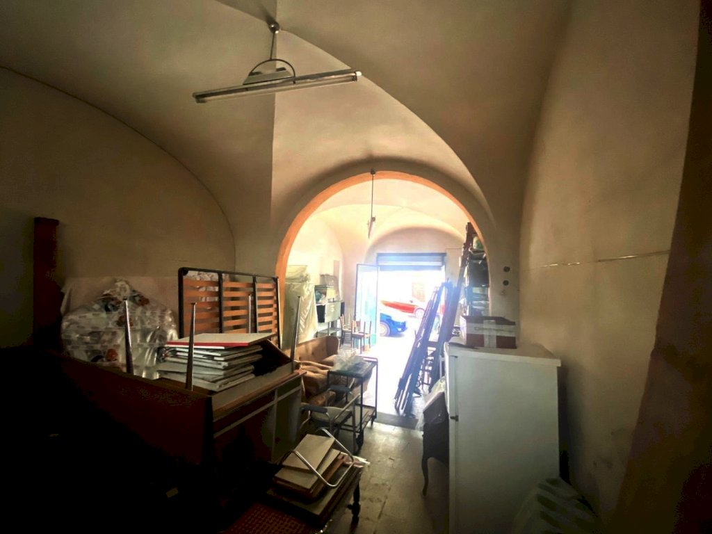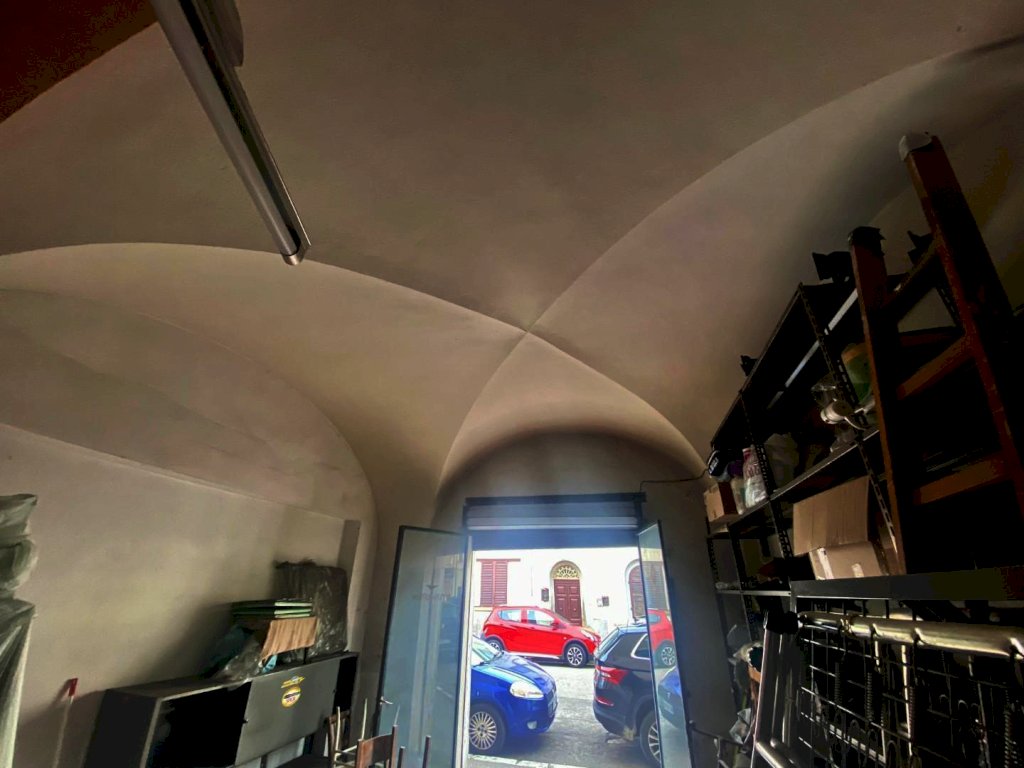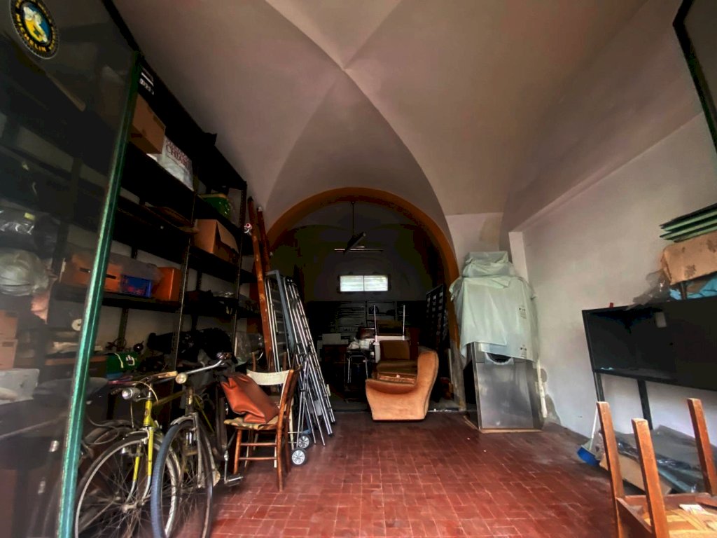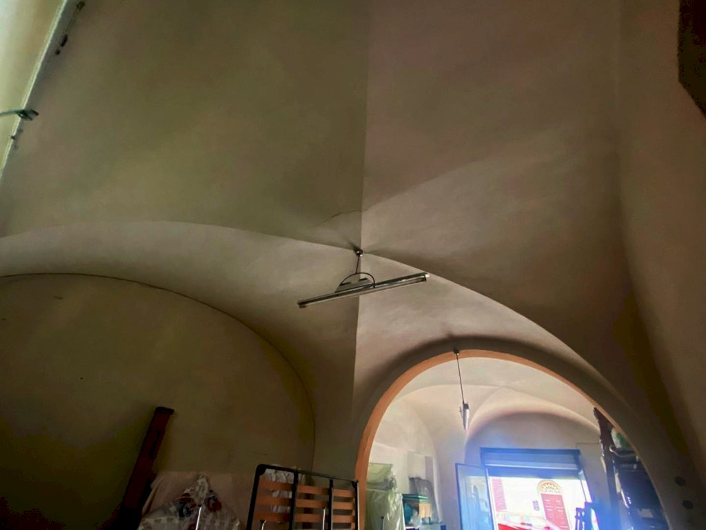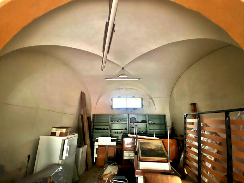 ampio locale uso garage di 40 mq circa, composto da un unico locale, soffitto con volte a crociera, larghezza apertura serranda 189 cm