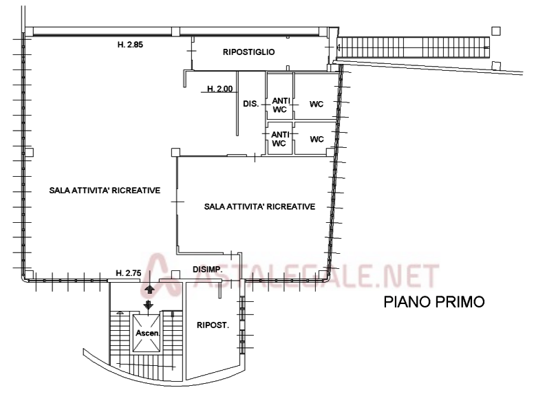 con annesso piccolo deposito, spogliatoio, antibagno e due wc.