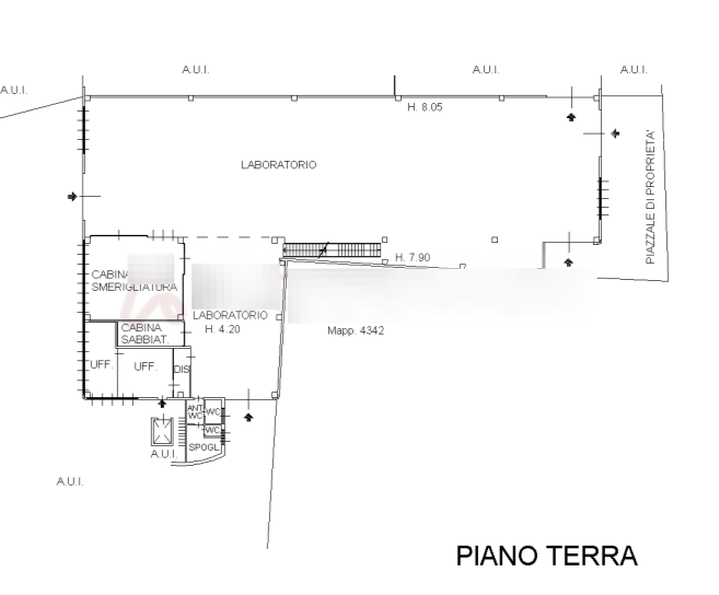È compresa l'area cortilizia esterna di circa 170 mq insistente in lato ovest anch'essa in proprietà privata.