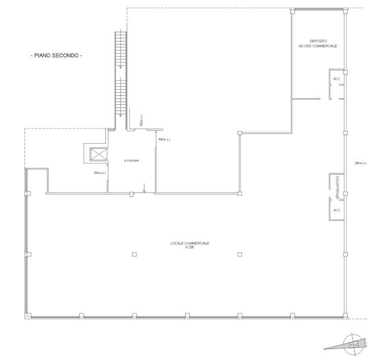 Siena - Cerchiaia Capannone commerciale di complessivi mq. 830 ca. con piazzale di 1400 mq. ca. in vendita posto al primo piano con ascensore, attualmente diviso in 4 locali commerciali locati con rendita di circa € 5.000,00 mensili.