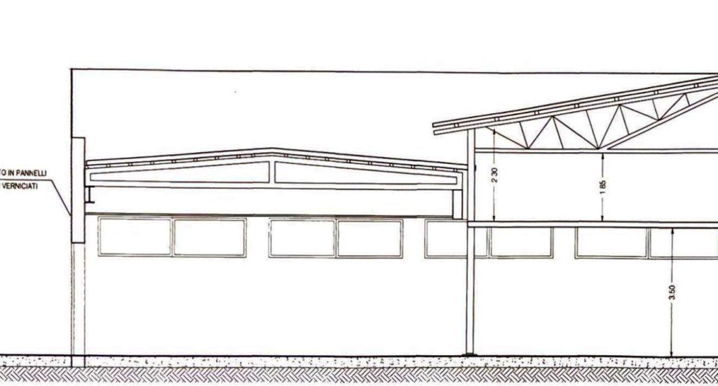 il capannone ha un altezza al culmine di h 7,20 , mentre al trave 5,20 ml, all' ingresso la parte piu bassa e di 3,80 mt