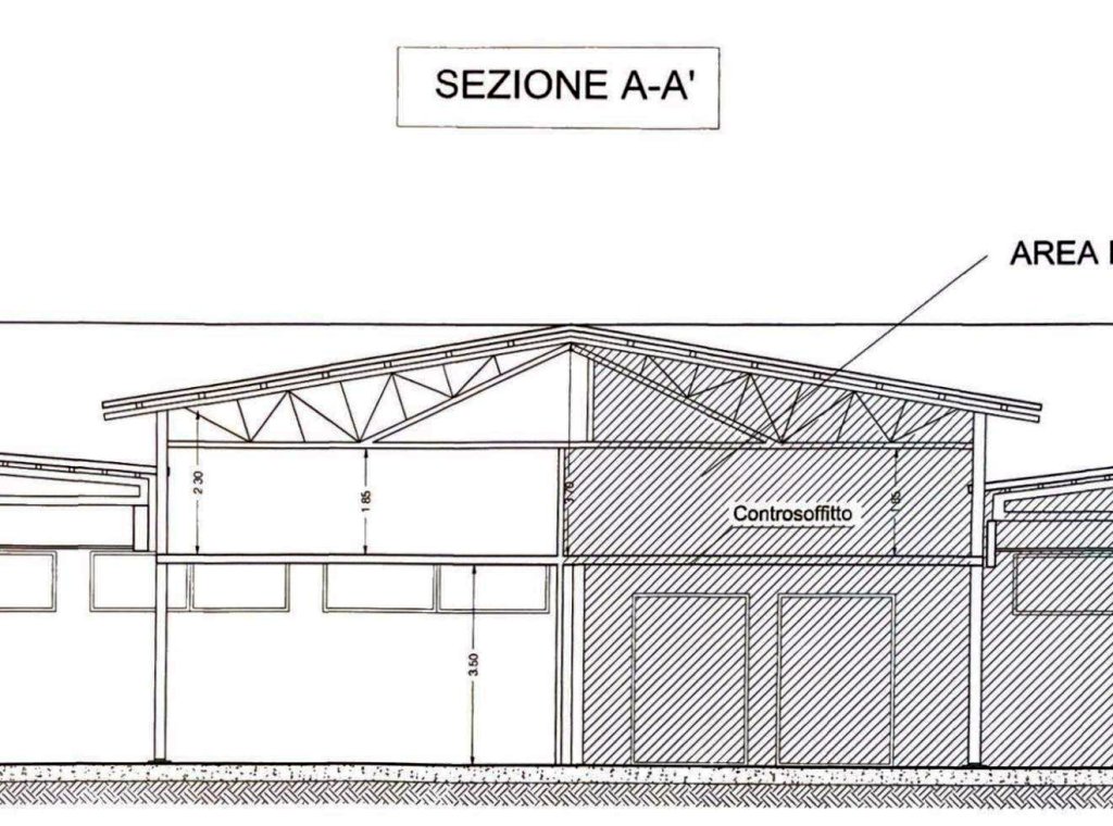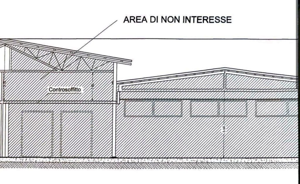 il capannone ha un altezza al culmine di h 7,20 , mentre al trave 5,20 ml, all' ingresso la parte piu bassa e di 3,80 mt
