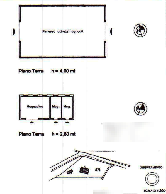 I locali magazzino, di pertinenza del capannone/rimessa attrezzi agricoli, sono rappresentati da un piccolo immobile, a pianta rettangolare, della superficie di circa 68,00 mq, all'interno del quale si rileva la presenza di tre locali, anch'essi illuminati da piccole finestre, ciascuno con ingressi indipendenti.