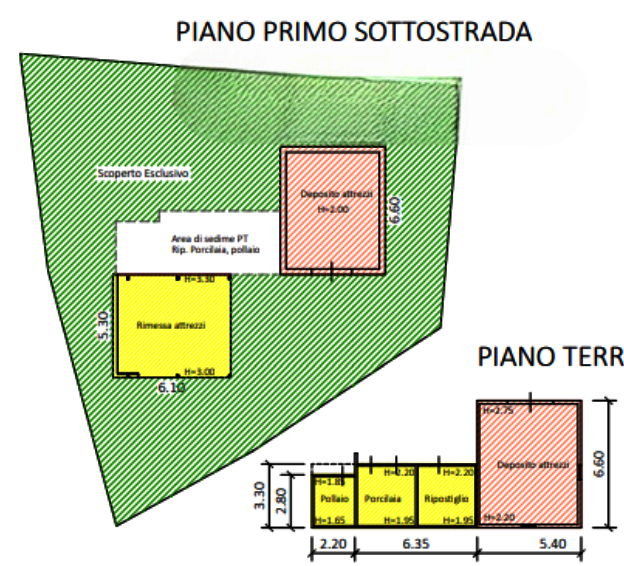 Il primo capannone per usi agricoli con stallone e concimaia interrata, oltre a scoperto, ha una superficie commerciale di circa 328 mq;