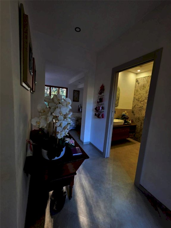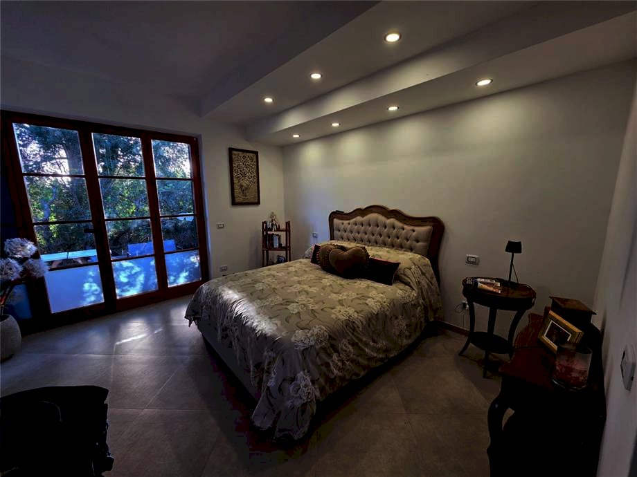 Composta da ampio e luminoso soggiorno con angolo cottura ed antistante porticato, caminetto, corridoio, camera matrimoniale con cabina armadio, due camere singole, due bagni.