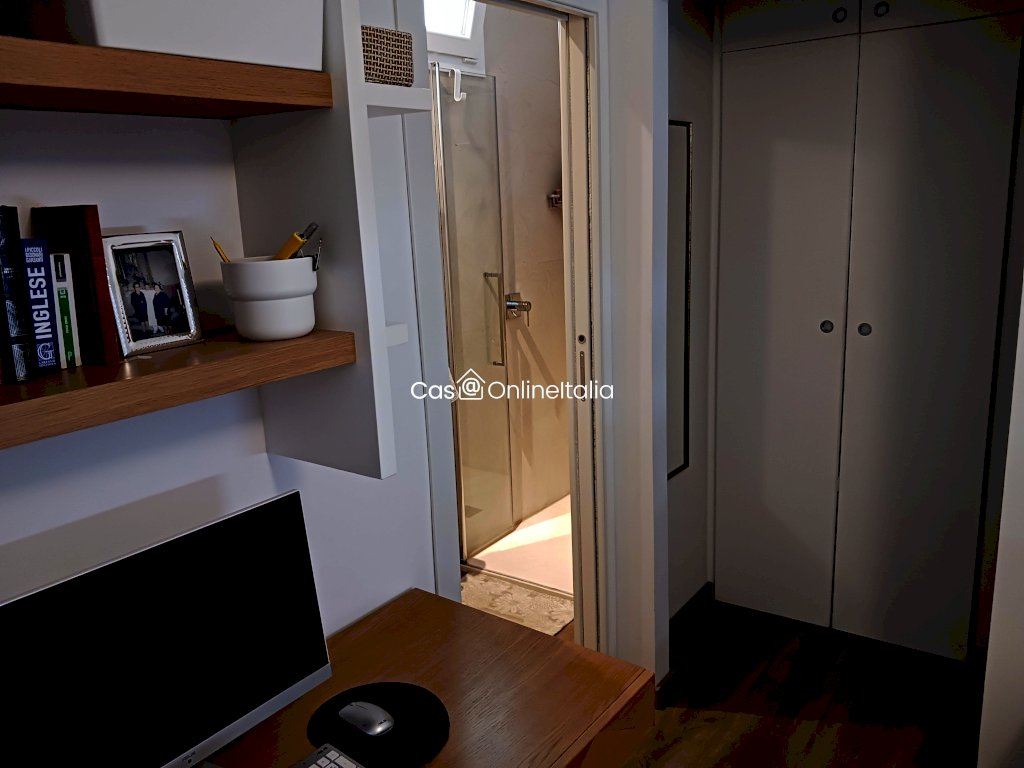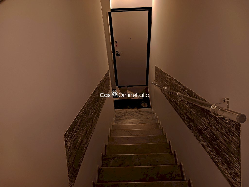 l'immobile si sviluppa in un ampio atrio al piano terra,pochi scalini ci portano al primo piano dove troviamo un soggiorno con terrazzino ,una cucina abitabile con altro terrazzino; una porta divisoria scorrevole invece delimita la zona notte con due camere matrimoniali di cui una con stanza armadi e due bagni ,uno dei due con terrazzino