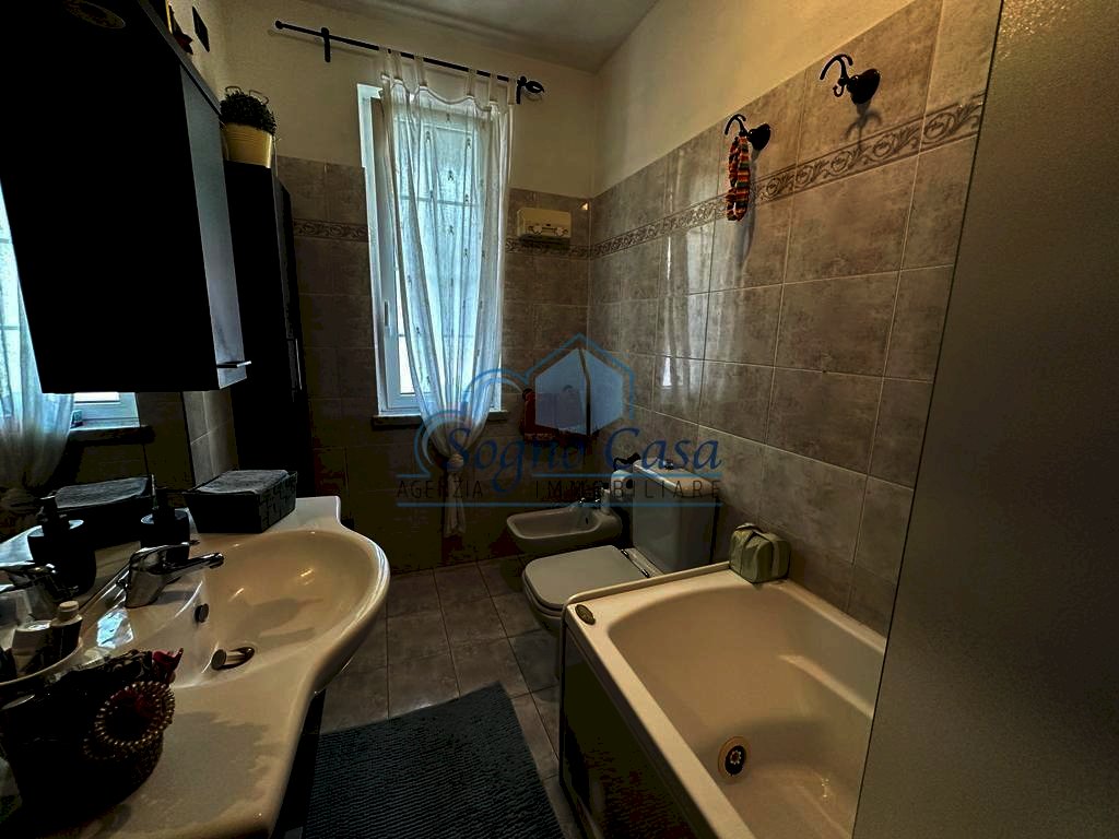 Ameglia a pochi metri da tutti i servizi nelle immediate vicinanze del mare semi indipendente con igresso indipendente su due livelli con circa 60 mq. di giardino composta da: ingresso,ampio soggiorno/pranzo,angolo cottura completo di cucina,camera da letto matrimoniale,cameretta,bagno con vasca idromassaggio,taverna con salotto,studio,bagno con doccia,garage con basculante motorizzata e accesso dall' interno,riscaldamento autonomo. Buono stato di conservazione.